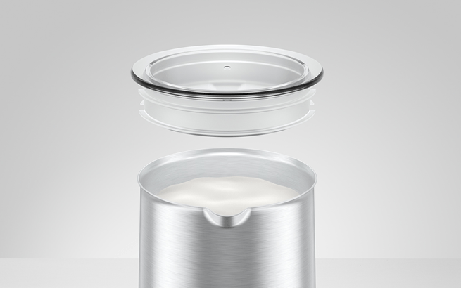 Με διάμετρο 13 εκ. και ύψος 21 εκ., η Αυτόματη συσκευή για ζεστό & κρύο αφρόγαλα είναι συμπαγής και εξοικονομεί χώρο. Εναρμονίζεται αρμονικά με κάθε κουζίνα και συμπληρώνει με στυλ τις μηχανές Γνήσιου Καφέ της JURA. Τα εύκολα στη φροντίδα υλικά, όπως το ανοξείδωτο ατσάλι, καθώς και οι στρογγυλεμένες γραμμές, κάνουν το δοχείο εύκολο στο καθάρισμα.